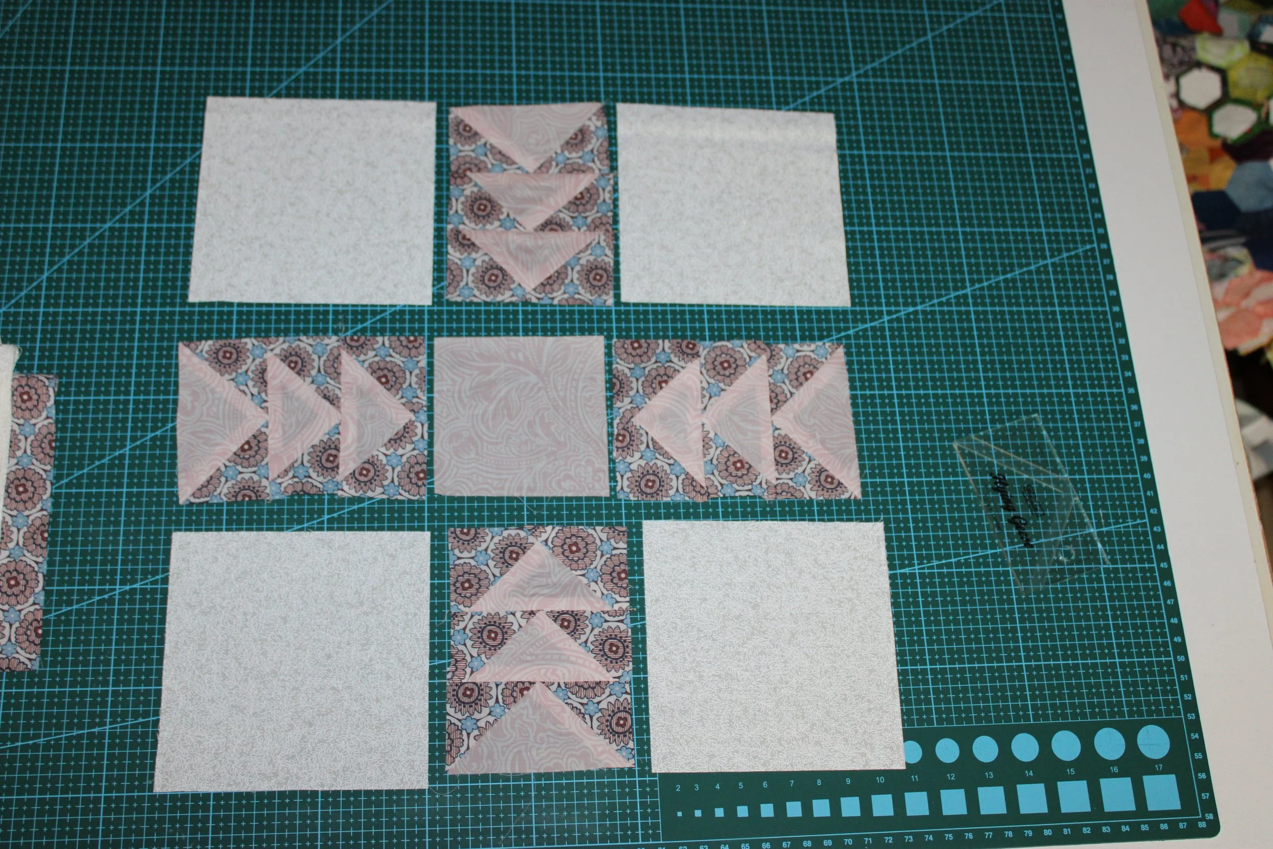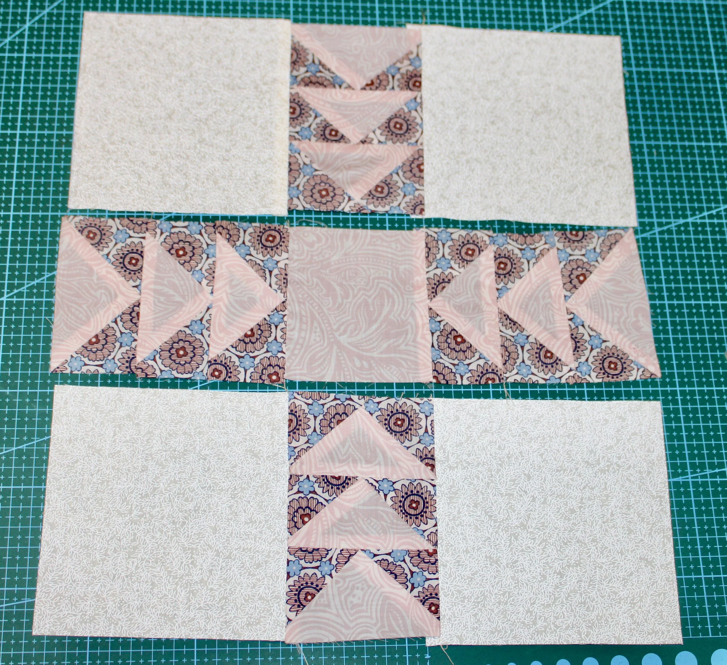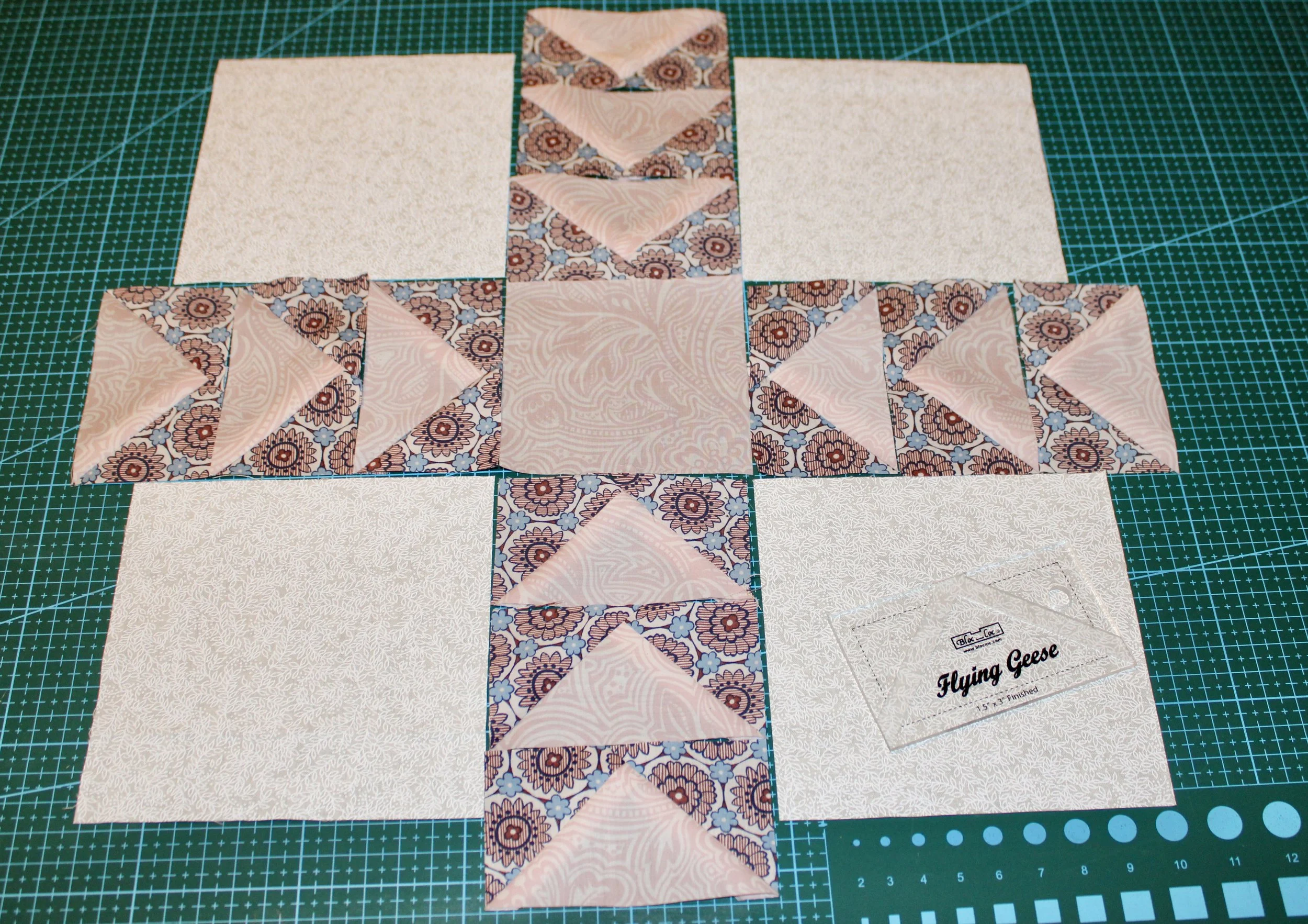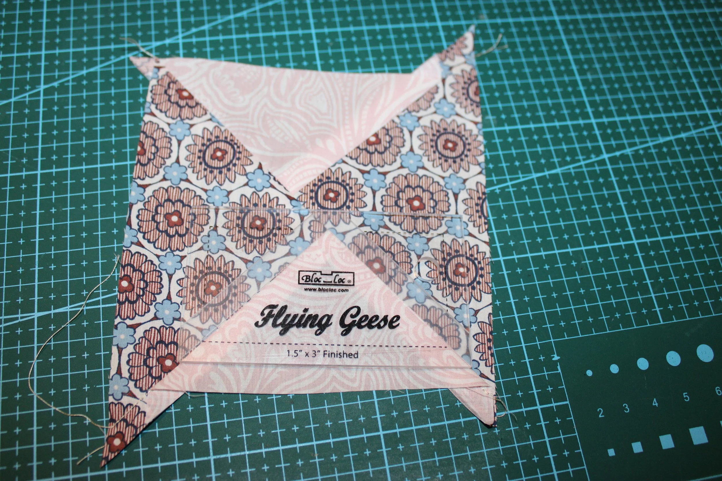 Once all 12 of your geese are trimmed up your block should look like this. Now we just need to sew the components together.